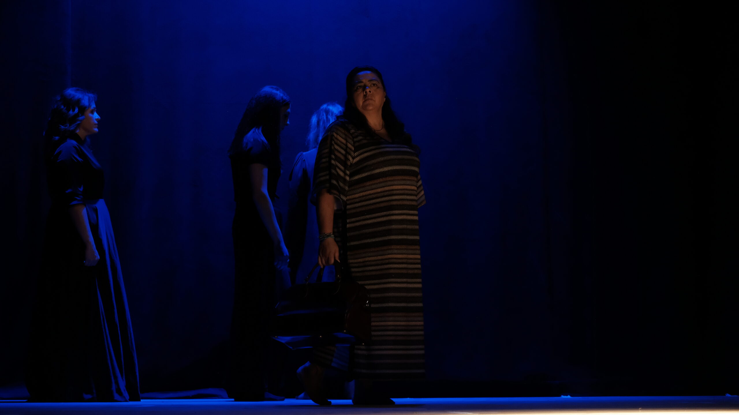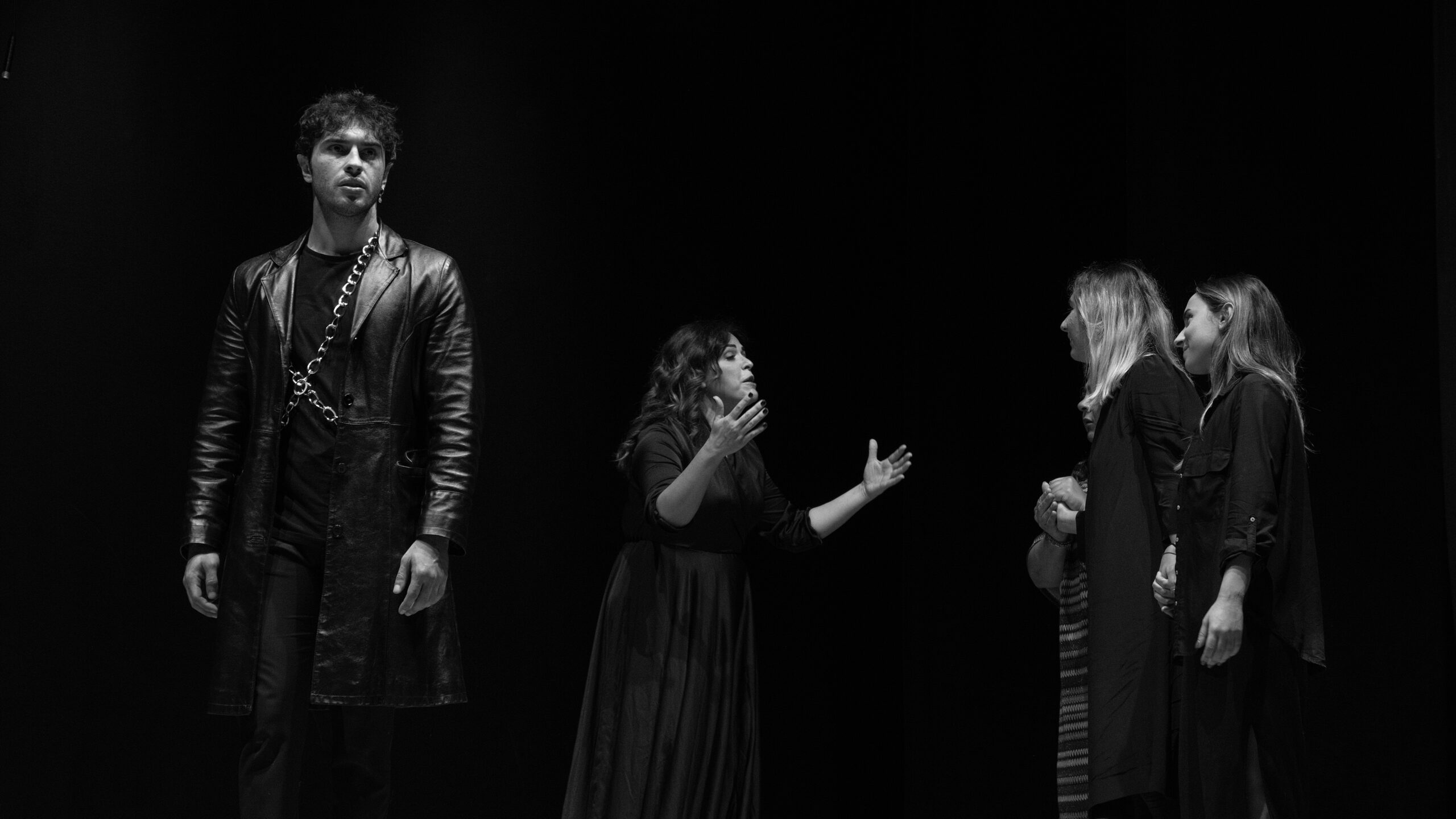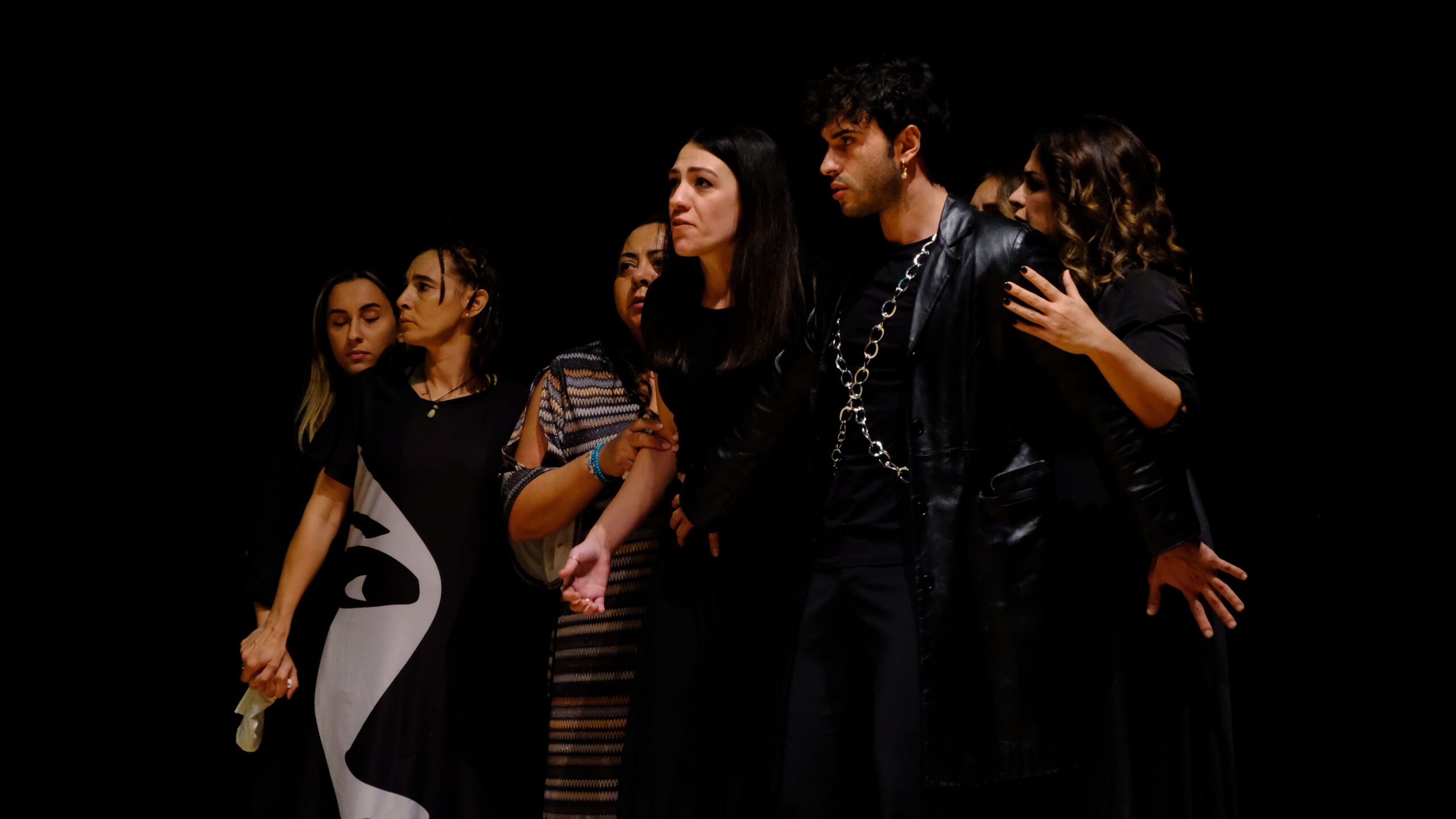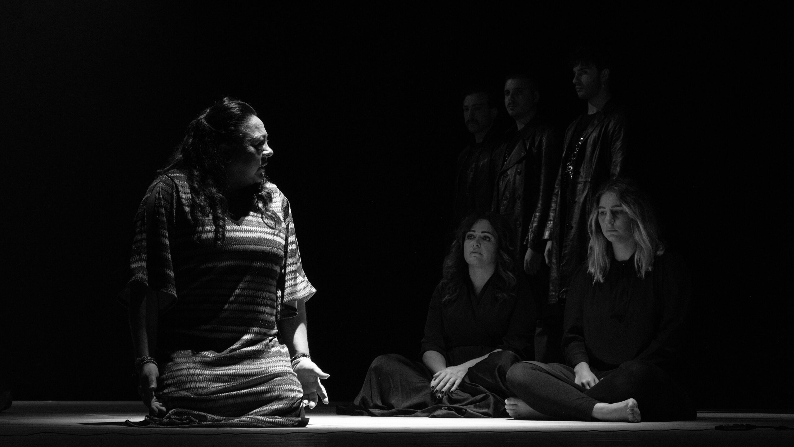 Ed è proprio la fuga dalla terra natia, a far da anello di congiunzione tra la sorte delle migranti e dei migranti del nostro tempo, in cui l‘isola di Lampedusa di è la Hellis Island conosciuta e patita sotto mille angherie e sofferenze dai migranti di Mezza Europa diretti nel sognato Eldorado degli States, a cavallo dell’800 e del ‘900, così come le Supplici sono fuggitive dal regno d’Egitto, governato dai fratelli gemelli, Danao e Egitto,- interpretati da Vincenzo Del Prete e Andrea Zuozo– tutte figure che vivono nel mondo della mitologia. E le figlie di Danao sono destinate alle nozze con i cugini, figli di Egitto ch’è tutto proteso a consolidare il suo potere. Un destino imposto che le giovani donne non accettano e respingono con tutte le forze, sorrette e guidate dal padre Danao nella fuga che le fa approdare ad Argo, modello di polis in formazione che riconosce il diritto d’asilo e si vale dell’assemblea di auto-governo cittadino, espressione di democrazia che declina libertà, dignità umana e giustizia.