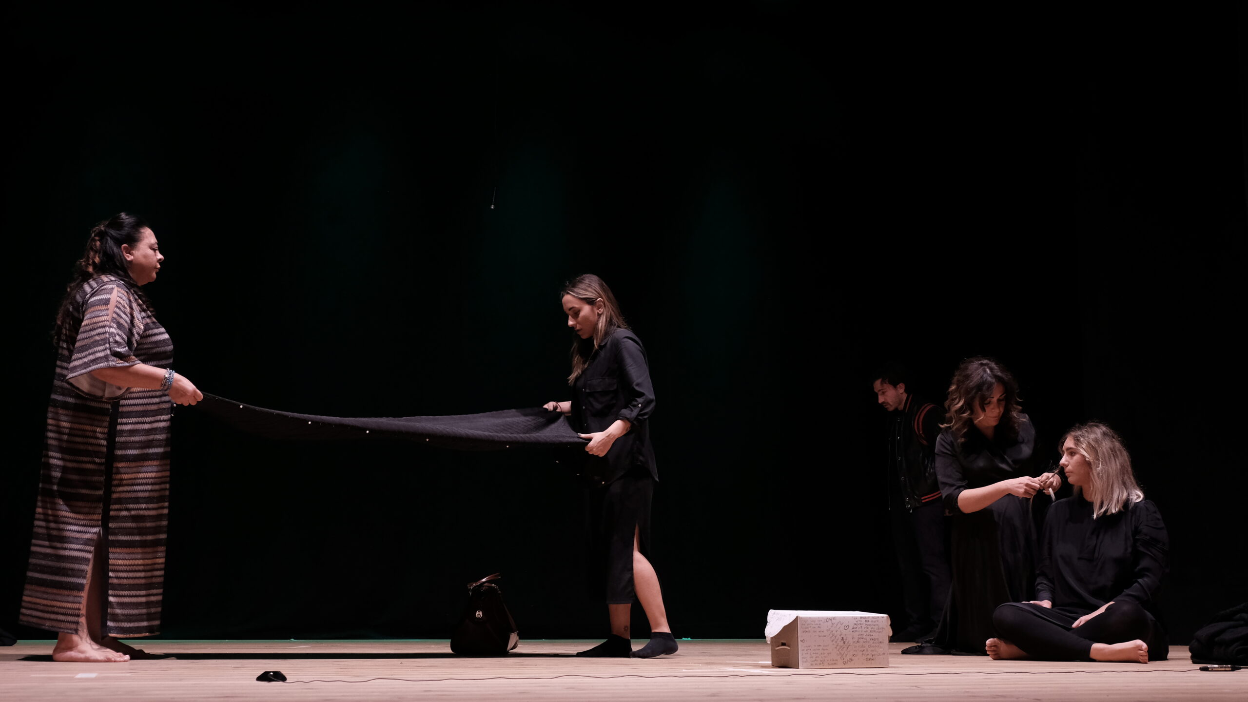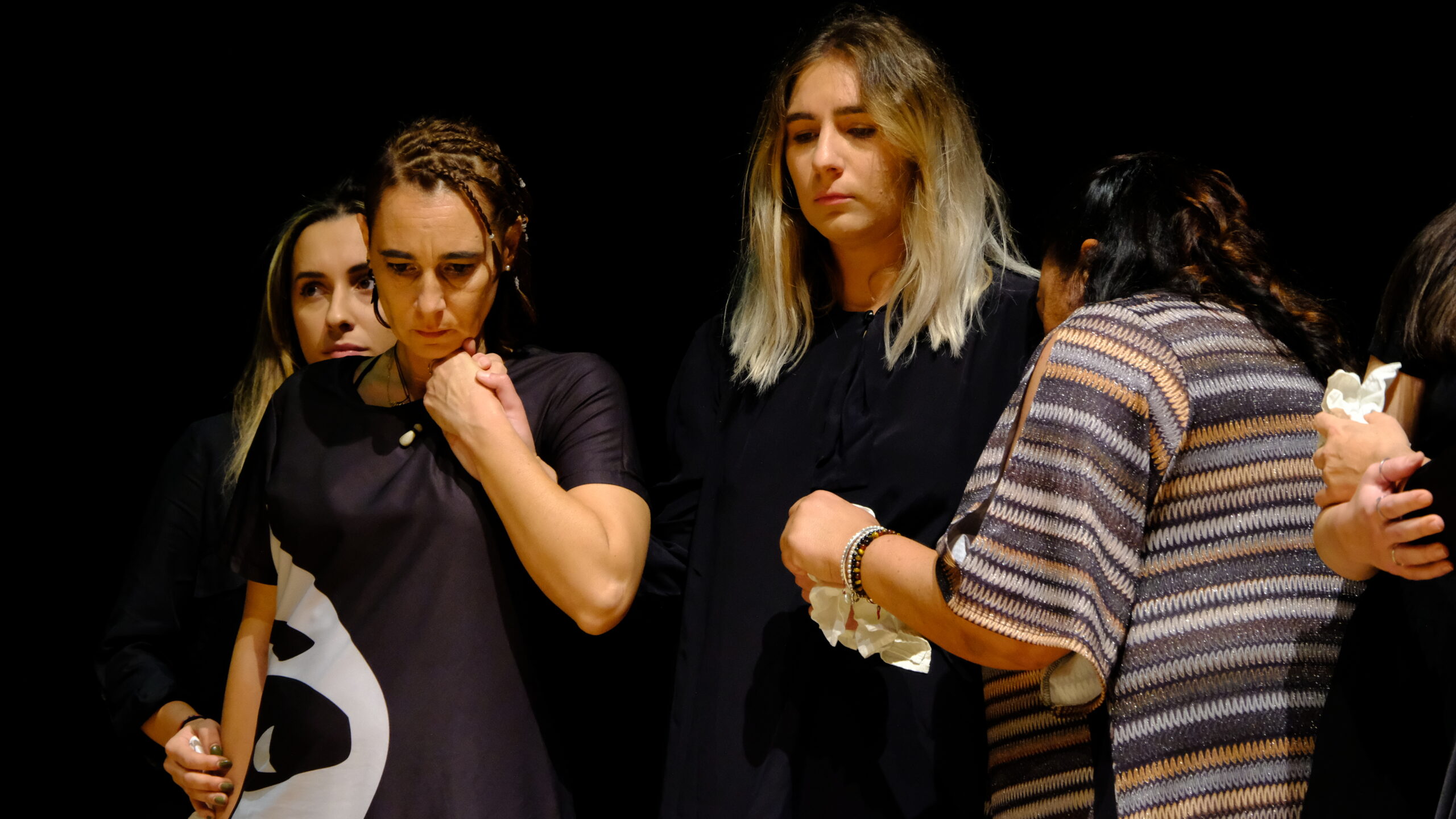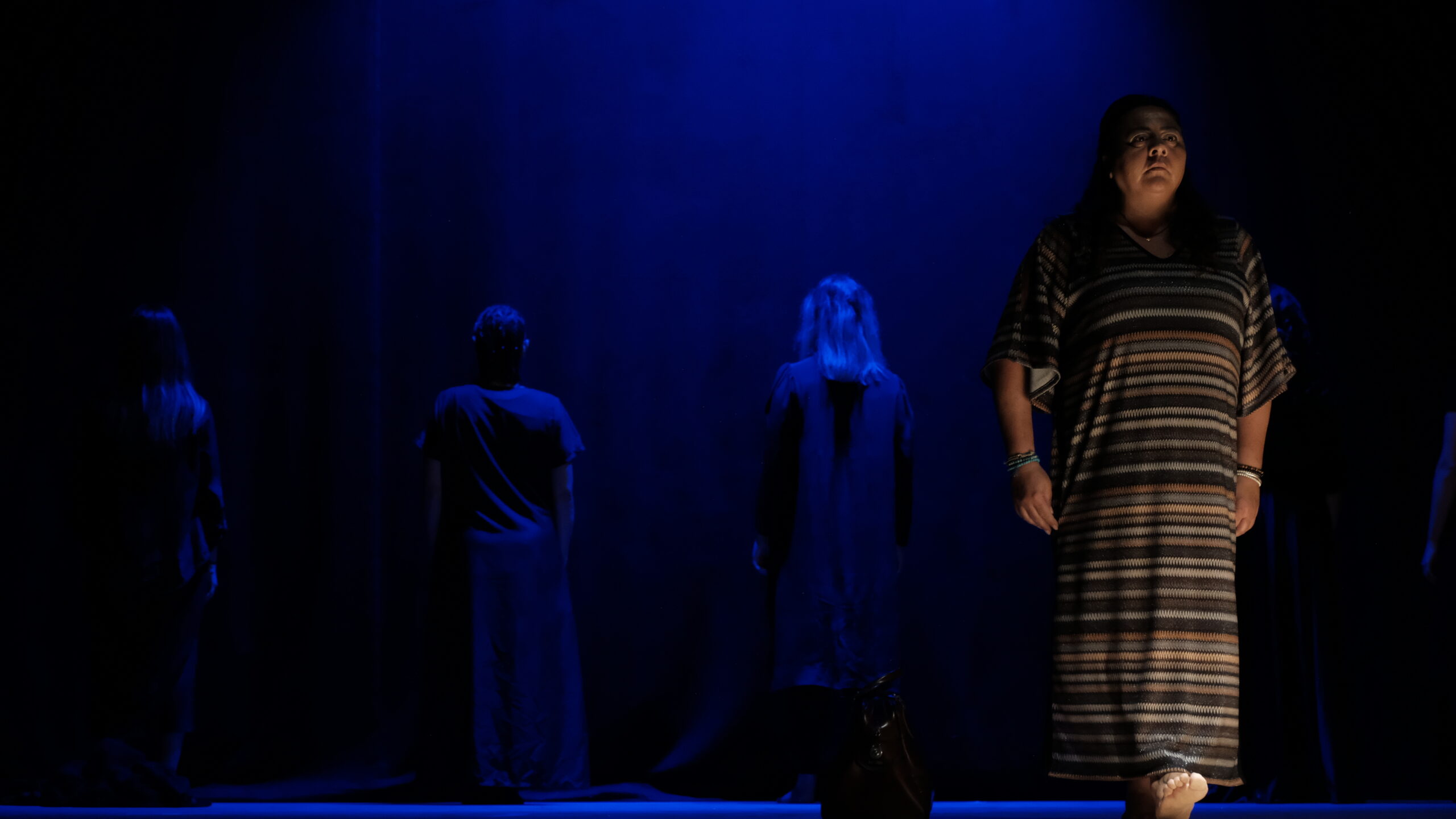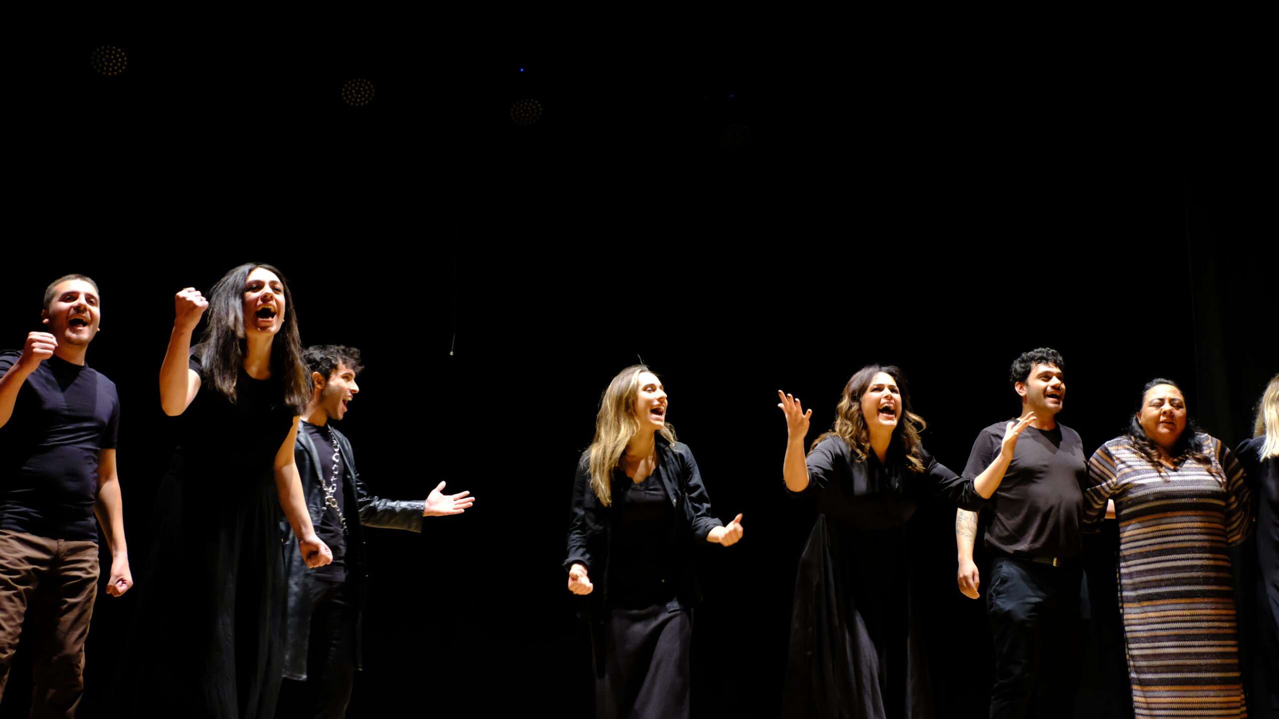 Ed è proprio la fuga dalla terra natia, a far da anello di congiunzione tra la sorte delle migranti e dei migranti del nostro tempo, in cui l‘isola di Lampedusa di è la Hellis Island conosciuta e patita sotto mille angherie e sofferenze dai migranti di Mezza Europa diretti nel sognato Eldorado degli States, a cavallo dell’800 e del ‘900, così come le Supplici sono fuggitive dal regno d’Egitto, governato dai fratelli gemelli, Danao e Egitto,- interpretati da Vincenzo Del Prete e Andrea Zuozo– tutte figure che vivono nel mondo della mitologia. E le figlie di Danao sono destinate alle nozze con i cugini, figli di Egitto ch’è tutto proteso a consolidare il suo potere. Un destino imposto che le giovani donne non accettano e respingono con tutte le forze, sorrette e guidate dal padre Danao nella fuga che le fa approdare ad Argo, modello di polis in formazione che riconosce il diritto d’asilo e si vale dell’assemblea di auto-governo cittadino, espressione di democrazia che declina libertà, dignità umana e giustizia.