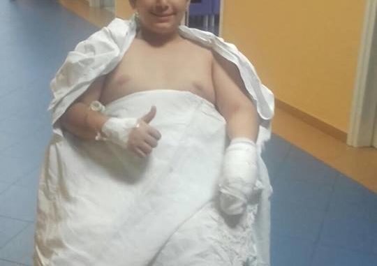 Un incidente domestico che poteva causare conseguenze molto più gravi di quelle subite ma grazie a Dio Francesco Crisci, il dodicenne di Baiano che si ustionò nel tentativo di accendere la stufa di casa con l’uso di alcol etilico e poi lanciatosi dal primo piano della sua abitazione, oggi ha iniziato a lasciare il letto dell’ospedale Santobono di Napoli per passeggiare nei corridoi della struttura sanitaria. Con questa foto che ritrae il ragazzo con il pollice all’insù la famiglia di Francesco, ovvero papà Salvatore Crisci e mamma Felicia Maietta hanno voluto ringraziare tutti coloro che gli sono stati vicini in questi momenti difficile. Tanti i messaggi di auguri ricevuti in questi giorni anche da chi non ti aspetti, come dal cantante Gigi D’Alessio che gli ha postato un video. Francesco rimasto ustionato sta continuando a ricevere le cure presso la struttura sanitaria napoletana e se tutto procede bene entro 20 giorni potrebbe ritornare nella sua Baiano dove ad attenderlo c’è un paese intero. La redazione augura al giovanissimo una pronta guarigione pronti ad attenderlo in via Santissimi Apostoli per il suo ritorno a casa.