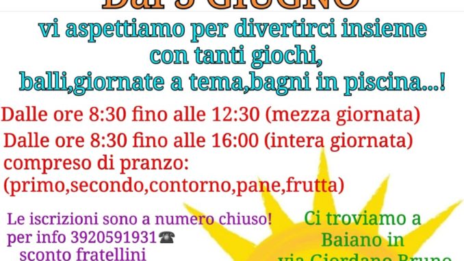 BAIANO. Il 3 giugno riparte il Summer Camp di Yuppies Animation 15/05/2019 binews.it ATTUALITA', BAIANO 0
