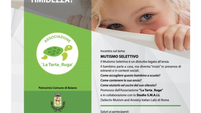 Interessante dibattito dal tema “Il mutismo selettivo” nei bambini è stato promosso dall’Associazione “La Tarta_Ruga”, per domenica 10 giugno 2018 alle ore 10 presso l’Auditorium della Scuola Media di Baiano. L’associazione organizzatrice, con sede in Baiano, è formata da un equipe di specialisti (psicoterapeuti, psicologi, neuropichiatra infantile, logopedista) che si occupa da anni di problematiche dell’età evolutiva e non solo. Associazione che per la sua competenza e specificità ha avuto autorizzazione dall’Asl di Avellino per la diagnosi e certificazione dei disturbi specifici di apprendimento (Dsa). Aspetto questo va incontro alle tante famiglie che si trovano in lunghe graduatorie di attesa per la certificazione. Visto il sempre più crescente numero di bambini con diagnosi di Mutismo selettivo, e visto l’interesse delle insegnanti a comprendere meglio tale disturbo e come aiutare il bambino all’interno del gruppo classe, la dr.ssa Napolitano Carmela, presidente dell’associazione, ha voluto fortemente questa iniziativa invitando anche la dr.ssa Simona Ius del centro S.M.A.I.L. (Selectiv Mutism and Anxiety italian Lab) di Roma, che da oltre 10 anni si occupa di Mutismo Selettivo. All’evento parteciperanno anche il dirigente scolastico dell’Istituto Comprensivo baianese “Giovanni XXIII” e l’assessore alla Cultura e alle Politiche Sociali dottoressa Rosita Rastiello.