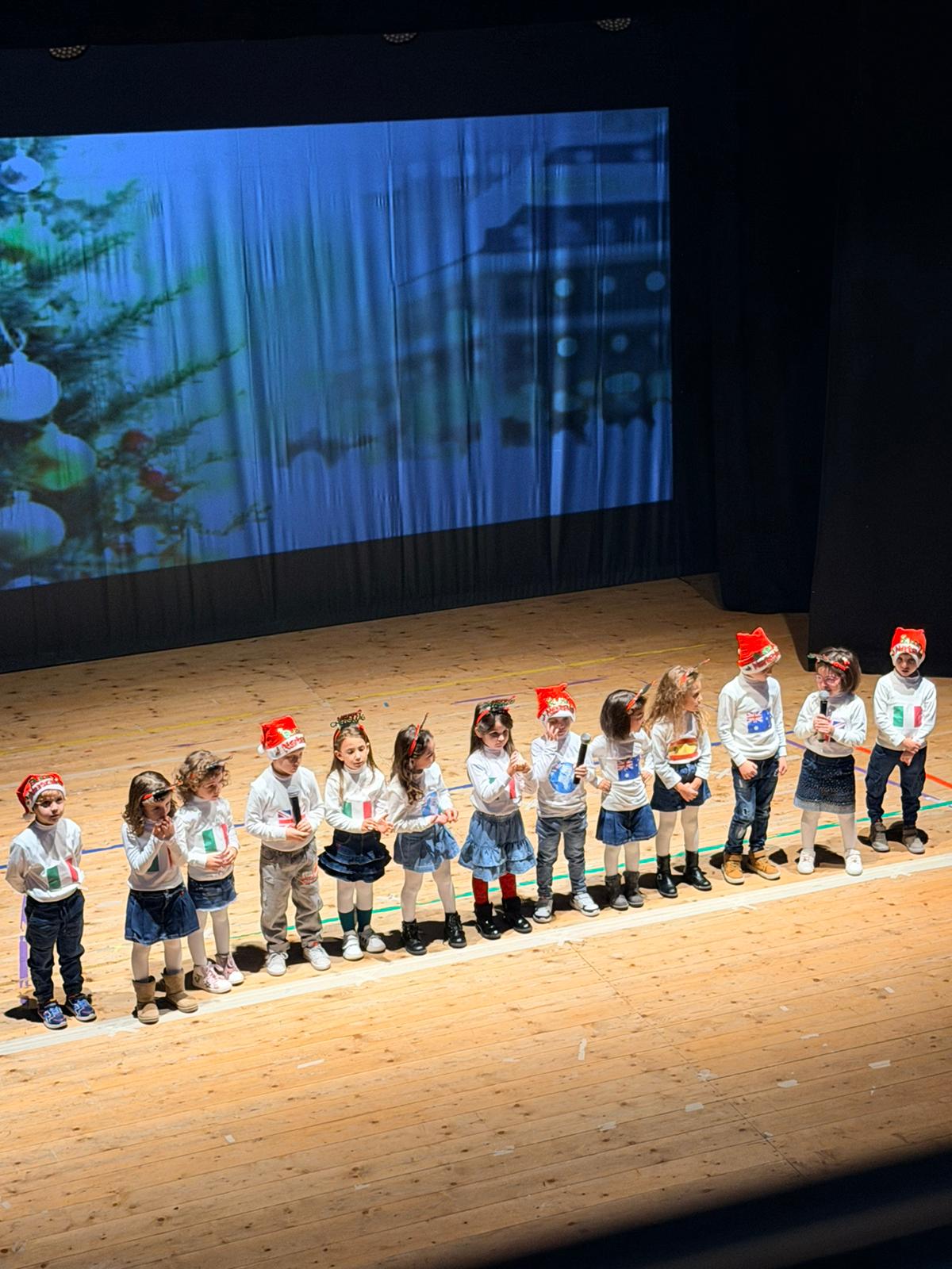 A seguire, i bambini di 5 anni hanno accompagnato il pubblico in un suggestivo viaggio nel “Natale nel mondo”, raccontando le festività attraverso le tradizioni natalizie di diversi Paesi. L’Italia, l’Inghilterra, la Polonia e l’Australia sono state al centro di un racconto che ha unito cultura, curiosità e spirito natalizio, dimostrando come il Natale venga vissuto in modi diversi ma con un messaggio comune di condivisione e pace.