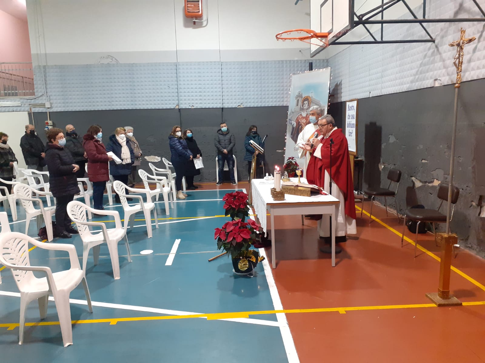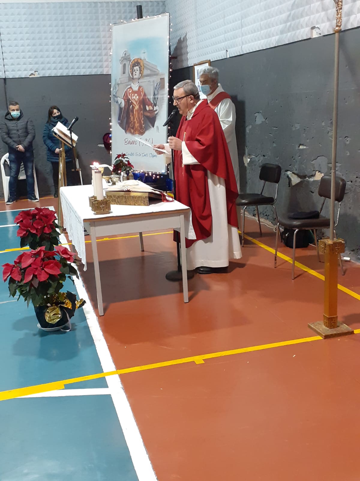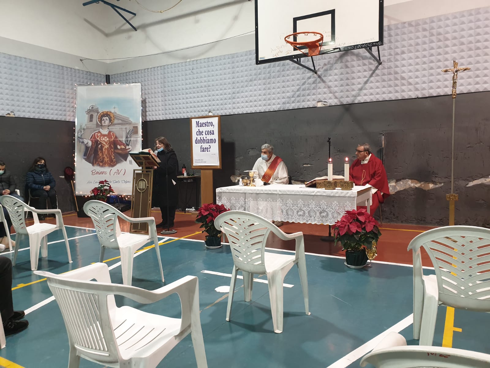 Oggi, 13 dicembre, Santa Lucia, una data che è nel cuore dei baianesi perché, con la prima Messa ‘e notte, segna l’inizio del percorso di Fede che ci porterà al Santo Natale e a Santo Stefano. Purtroppo, nella notte tra l’11 e il 12 dicembre, dall’abside della Chiesa Patronale, si sono staccati pezzi di intonaco precipitati rovinosamente sull’altare. I vigili del fuoco, intervenuti per verificare le condizioni, hanno deciso di chiudere la Chiesa per il rischio di ulteriori crolli. Il popolo di Baiano è rimasto smarrito. La chiusura della nostra “casa” è stato percepito come uno sradicamento, inaspettato e doloroso. Frenetica la ricerca di una soluzione, dal momento che anche la Chiesa di Santa Croce è chiusa per lavori in corso e Santi Apostoli troppo piccola per ospitare queste Messe. Grazie al faticoso impegno del pomeriggio fino a sera inoltrata del comitato Festa Santo Stefano, la palestra della Scuola Media, individuata come soluzione, è stata preparata per celebrare le Messe ‘e notte nel rispetto della nostra secolare tradizione. Stamattina, come ombre nel buio dell’alba, noi fedeli siamo entrati increduli ed esitanti in questo spazio asettico, certamente privo della calda “intimità” della nostra Chiesa. Sentivamo la mancanza dei tradizionali riferimenti di memoria, delle emozioni da seduti negli stessi banchi dei nostri avi e di rivivere quei sentimenti di appartenenza che si provano a “casa propria”, tra le navate, gli altari laterali, la statua di Santo Stefano, gli spazi tradizionalmente occupati dagli “uomini”. Poi don Fiorelmo, con la sua serena espressione, ci ha accolti con parole dense di significato. Il suo messaggio è stato chiaro e convincente: “le strutture possono crollare, ma è importante la “Gioia” che ciascuno porta dentro, e che è alimentata dalla Fede”. Parole che hanno determinato un cambiamento. Abbiamo ritrovato quel clima “intenso”, solidale: ci siamo sentiti fraternamente uniti intorno all’altare del nostro Santo, anche se la quinta dell’altare provvisorio era una struttura di pallacanestro. Miracolo della Fede.