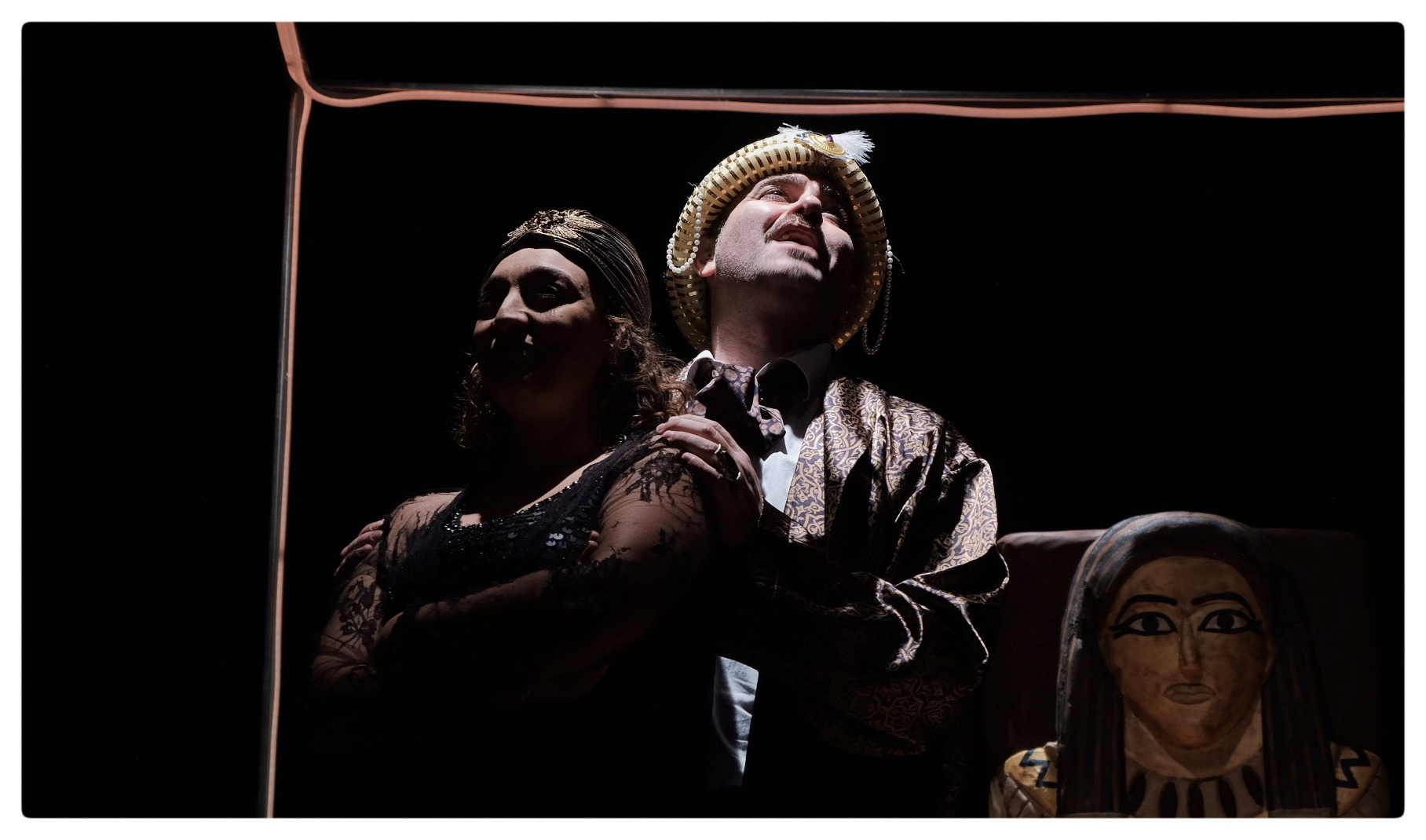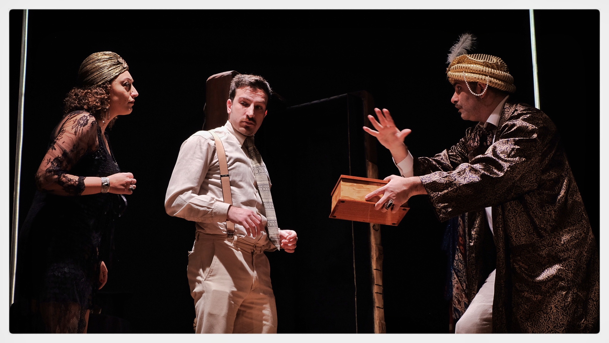 Gradevole e divertente, La grande magia – un classico della produzione  di Eduardo De Filippo– mandato in scena da ProTeatro, avvalendosi del libero   adattamento del testo originario sviluppato da Franco Scotto che ne ha curato la regia, con perfetta scelta di brani e sonorità musicali, a scandire l’azione narrativa, ravvivata nel gioco di luci e scenografie, ora soffuse, ora vivide allestite da Alberto Tortora. Una versione agile e scintillante, presentata al Colosseo ed affidata a tre interpreti, per quattro personaggi, con  Antonio Lippiello e Felice D’Anna, spigliati e duttili nei ruoli di Calogero Di Spelta e Otto Marvuglia, mentre Mariella Del Basso disegnava i profili di Marta Di Spelta, moglie di Calogero, e, al contempo, di Zaira, l’amante di Otto. Un doppio registro recitativo- quest’ultimo- che si ritrova nelle intuizioni di adattamento e interpretazione di Luca De Filippo e di Rosario Sparno, ben recepito in originalità  da Scotto e reso al meglio dell’espressività dalla disinvolta improntitudine nel cambiare  stati d’animo e linguaggio di circostanza, sfoggiata da Mariella Del Basso.