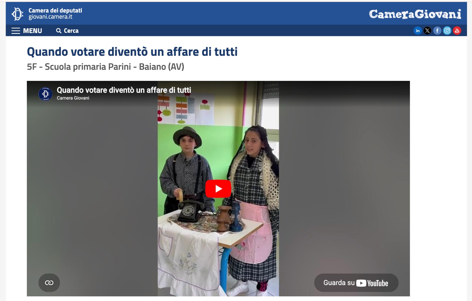 Protagonisti del successo sono stati gli alunni delle classi quinte della scuola primaria, autori di un progetto dedicato alla Costituzione, con particolare attenzione al diritto di voto. Il lavoro ha saputo valorizzare, con originalità ed efficacia comunicativa, un passaggio storico fondamentale per la democrazia italiana: la conquista del suffragio femminile.