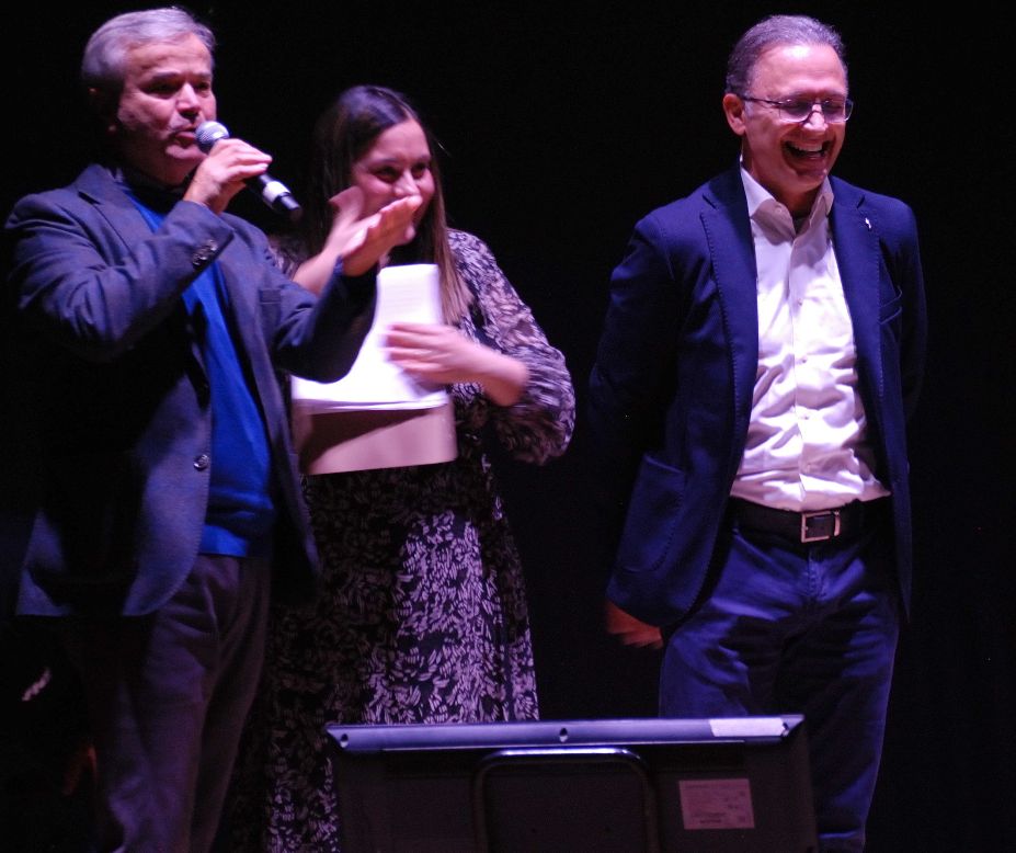 E sulla scia di Ciro Grossi e Riccardo D’Avanzo, spazio libero per il medico– fisarmonicista, il dottor Andrea Bellofatto, da qualche mese in pensione, dopo aver prestato servizio di lungo corso nel Distretto territoriale dell’Asl di Baiano. Uno spazio, in cui il medico Bellofatto ha sciorinato una deliziosa e divertente sequenza di brani, padroneggiando la tastiera secondo lo stile ritmato e frenetico di accompagnamento negli anni ’ 60 e ‘ 70 ai gruppi di giovani e meno … giovani partecipanti sul far dell’alba alle ritualità delle Messe ‘e Notte, viatico di devozione e fede per il Natale del Maio. Uno stile restato integro e vibrante, come qualche decennio fa, frutto di esercitazione costante, ovviamente, con la fisarmonica … amica, per l’occasione nuova di zecca ultima generazione griffata Soprani. E con il medico fisarmonicista, in gran spolvero per la confidenziale e … confidente tastiera della pianola, spiccava l’ exploit nel cocktail di gradevoli brani musicali, nell’esecuzione proposta dal professore Pasquale Napolitano, dirigente scolastico dell‘Istituto comprensivo Giovanni XXIII– Parini. Un exploit da applausi per il Preside, con laurea in Ingegneria informatica conseguita nell‘ Università di Salerno, e laurea di secondo livello in Pianoforte, conseguita al Conservatorio di San Pietro a Maiella, a Napoli. Due passaggi pregevoli, quelli del medico– fisarmonicista e del preside– pianista, ai quali si agganciava la performance canora di Franco Acierno, imprenditore commerciale, in duetto scintillante con figlia Stefania, poco prima citata. E non finiva certo così, in virtù degli intermezzi che si susseguivano e intervallavano il pout– pourri, interpretati e presentati da Anna Rondine, Antonio Picciocchi, Giovanni Capiluongo e Giusy De Laurentiis.