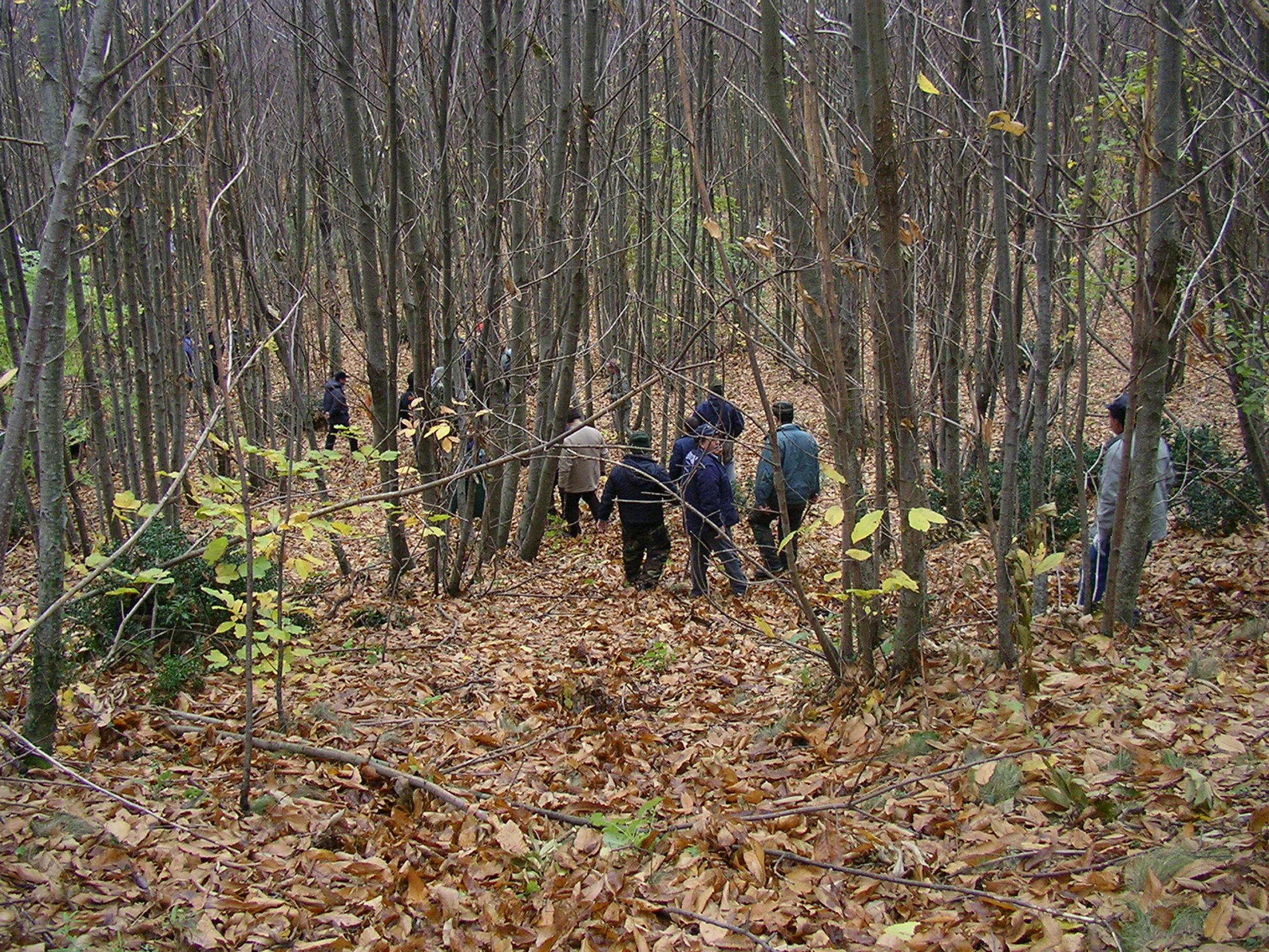 piazza F. Napolitano, per partire alla volta del bosco Arciano per la scelta del majo, una rappresentanza dell’Associazione, così composta: Antonio Capiluongo, Ninuccio Monteforte, Umberto Esposito, Carminuccio Napolitano, Antonio Vecchione. La località visitata è il piano cosiddetto della “Lurdicara”, dove sono stati individuati almeno due alberi di castagno che, per forma e dimensione, sono adatti e degni di diventare “Majo”. Infatti già a suo tempo furono segnalati e seguiti. Il primo si lascia preferire essendo più facilmente accessibile per il carico, anche se si rendono necessari alcuni lavori per rendere praticabile la strada di accesso. Il secondo, posizionato più in alto, ha un diametro maggiore (occorre valutare la possibilità, una volta a valle, di carico sul carretto) ed inoltre stabilire la strada per portarlo a “caricaturo”, nel posto, cioè, dove