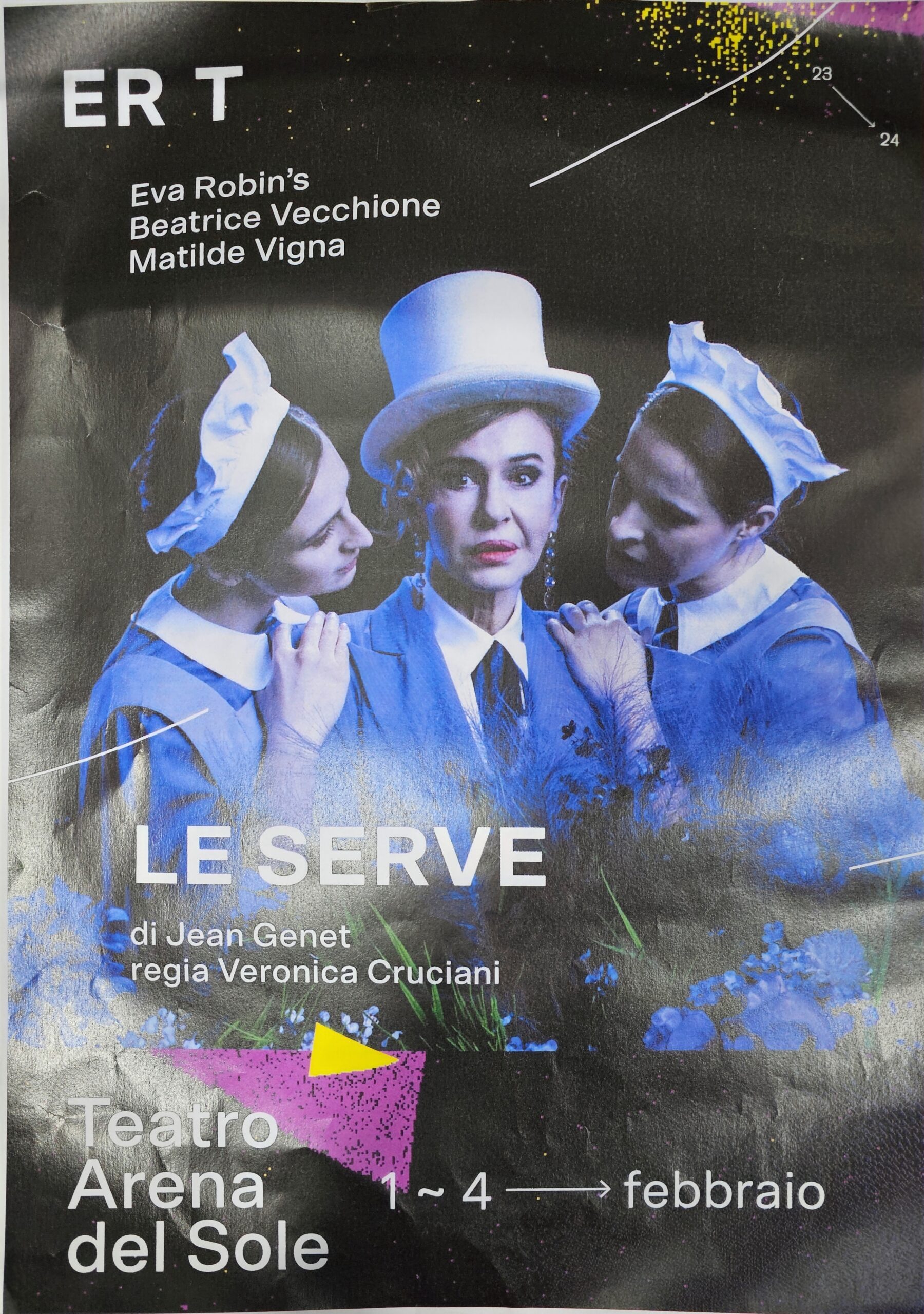 Il capolavoro teatrale di Jean Genet, per la regia di Veronica Cruciani. Tournèe nazionale, con esordio al Teatro dell’Arena del Sole, a Bologna. Le Serve in scena con Eva Robin’s, Beatrice Vecchione e Matilde Vigna