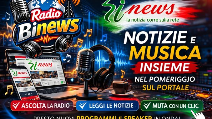 Una nuova esperienza di informazione e intrattenimento sta per arrivare per i lettori di Binews. La redazione lancia infatti una nuova iniziativa che unisce informazione e musica, offrendo la possibilità di leggere le notizie mentre si ascolta la radio del portale.