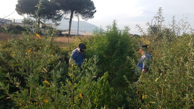 I carabinieri della Stazione di Boscoreale hanno arrestato per coltivazione e detenzione di stupefacente a fini di spaccio Ciro Guastafierro, un 35enne del posto già noto alle ff.oo., aveva avviato in un terreno confinante con la propria abitazione, tra piante comuni, la coltivazione di 5 piante di cannabis indica. Ciascuna aveva raggiunto l’altezza di 1 metro e mezzo e complessivamente un peso di 4,450 chilogrammi. Le piante erano destinate verosimilmente alla produzione di stupefacente da destinare alla vendita al dettaglio. Occultati in tre diversi mobili, infatti, i militari hanno rinvenuto 68 grammi di “marijuana” già essiccata. 10 grammi erano già stati suddivisi in 7 dosi, pronte per la cessione. Sequestrati anche bilancini di precisione e materiale vario per il confezionamento delle dosi. L’uomo è stato tradotto presso la casa circondariale di Napoli Poggioreale.