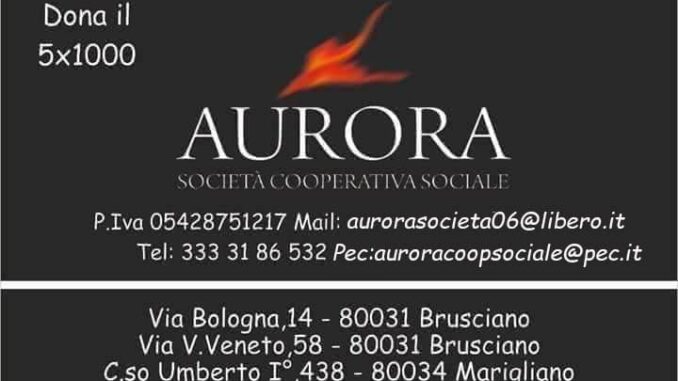 Per ulteriori info: https://www.cooperativaeco.it/i-nostri-progetti/ Aurora Società Cooperativa Sociale Brusciano Via Vittorio Veneto 58 Brusciano – 80031