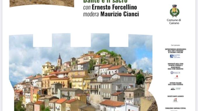 Con il dibattito di sabato proseguirà la rassegna culturale, che ha visto già gli appuntamenti tenuti a Montefusco con Ciro Rinaldi, Michele Rinaldi e Carmela Covino per discutere di “Dante, dell’immagine e dell’inimmaginabile”, a Lapio con Gualberto Alvino, Luca Maria Spagnuolo e Melissa Giannetta per un dibattito su “Dante, dell’amore e della verità”, a Sant’Angelo dei Lombardi con Marco Grimaldi e Giuseppe Sicuranza sul tema “Dante, della città e dell’esilio”, a Bisaccia con Mico Capasso, Rino Ferrante e Stefano Vetrano in cui si è dialogato su “Immaginare la Commedia”, a Mercogliano con Giuseppe Alvino e Toni Feoli e Maria Consiglia Alvino per discutere di “Il cosmo di Dante”, a Gesualdo con Vittorio Celotto, Davide Grassi e Laura Polzone su “Dante della poesia e della conoscenza”, a Rocca San Felice con Massimo Adinolfi, Antonio Del Castello e Andrea Salvo Rossi sul tema “Dante, della giustizia e della pena”, a Taurasi con Vito Limone sul tema “Dante, della visione” e a Castelvetere con il Laboratorio di filosofia per bambini con Michela Salsano.