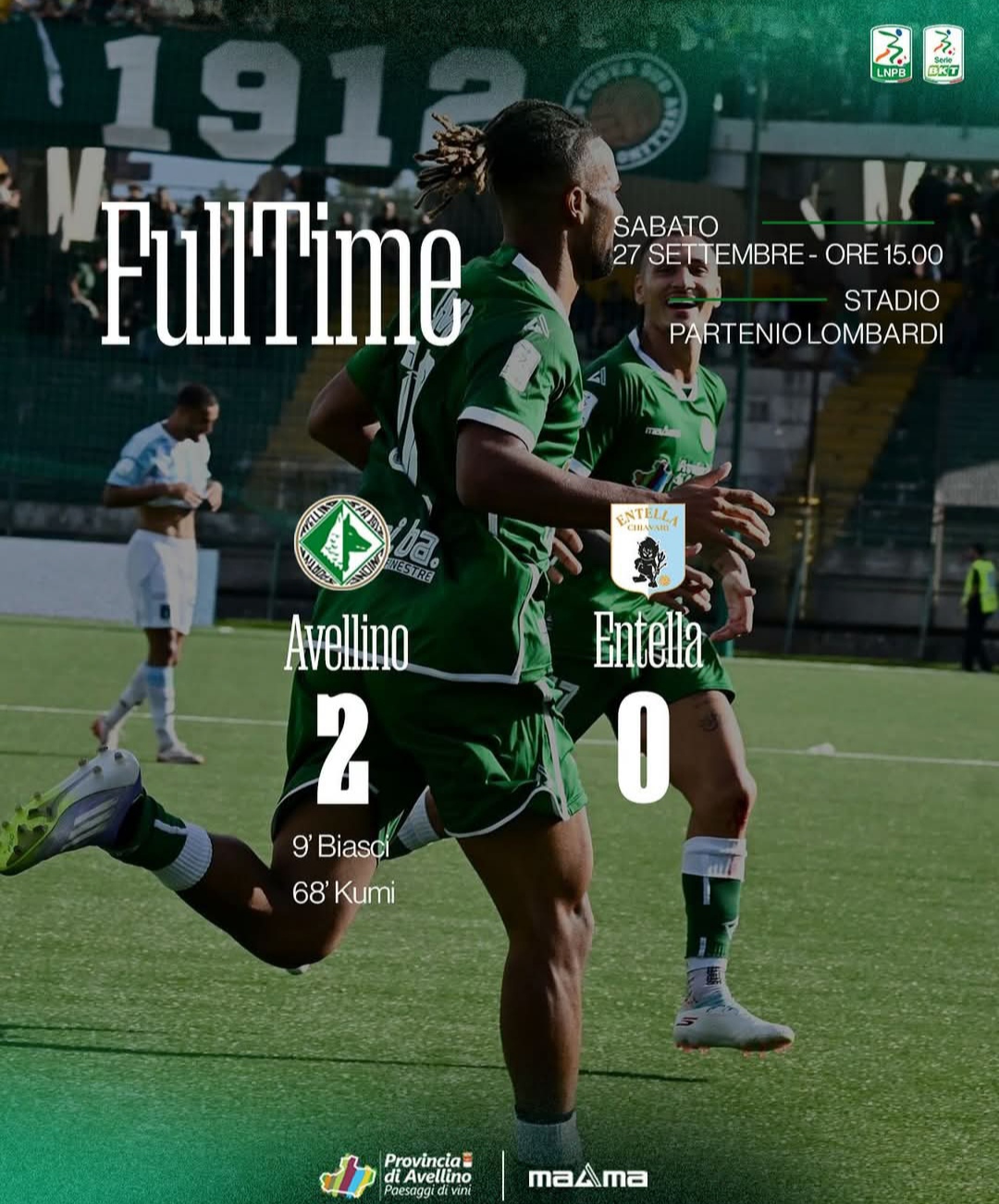 Avellino forza tre, sono le vittorie consecutive con quella di oggi, tra le mura amiche, contro la Virtus Entella. Biasci e Kumi stendono i liguri.