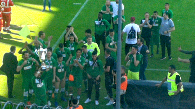 Il Calcio Avellino e’ Campione d’Italia Dilettanti. Battuto ai rigori il Lecco dopo l’1-1 dei tempi regolamentari. Grande festa per il titolo, quindicesima vittoria consecutiva, record eguagliato in categoria. Dopo il primo tempo a reti bianche, il Lecco va vicino al vantaggio ma e’ bravo Betti a salvare appena al di la’ della linea di porta. Passano 3′ e i lombardi si portano in vantaggio, Capogna non sbaglia il tap in dopo una iniziativa di D’Anna. Bucaro butta nella mischia Pepe e Buono per Matute e Carbonelli. Al 14′ i lupi siglano l’1-1, perentorio colpo di testa Morero, al bacio l’imbeccata da calcio di punizione di Di Paolantonio. Girandola di sostituzioni nelle due squadre, spazio anche a Ciotola e Sforzini, De Vena conclude una grande stagione, 23 gol. Il Lecco fa venire i brividi ai biancoverdi, Capogna per poco non arriva su un pallone che andava solo spinto in rete. Risponde Tribuzzi, sgroppata e fucilata ma Safarikas fa una gran parata. Mister Gamburro inserisce Fall e Draghetti per Capogna e D’Anna. Al 37′ ci prova Segato da lontano, Lagomarsini e’ pronto. In casa lombarda spazio anche all’ex Nocerino. Dopo 5′ di recupero si va ai calci di rigore. Sbaglia subito Segato, palo; Morero di potenza e centrale gonfia il sacco; Lagomarsini si distende opponendosi a Pedrocchi; errore per i lupi, Safarikas dice no a Pepe; terzo rigore fallito su tre in casa lecchese, traversa di Lisai; Di Paolantonio buca Safarikas che pur intuisce; gli uomini di Gamburro fanno l’en plein di “stecche”, Fall spedisce in curva. Morero alza al cielo il trofeo consegnato dal Presidente LND Cosimo Sibilia, patron De Cesare, il Presidente Mauriello e il ds Musa a salutare i tifosi, Bucaro e i suoi ragazzi osannati. Il tricolore e’ sul petto dei lupi.