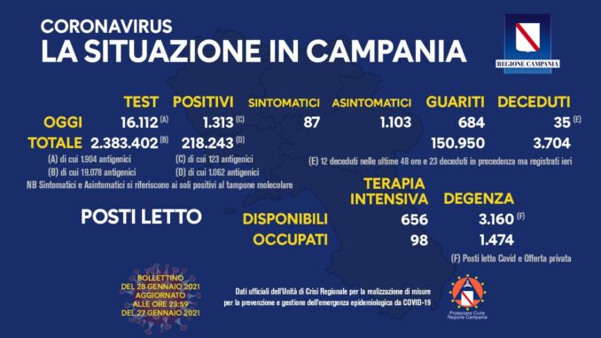 CAMPANIA. Covid, aumentano i contagi oggi: 1313 positivi