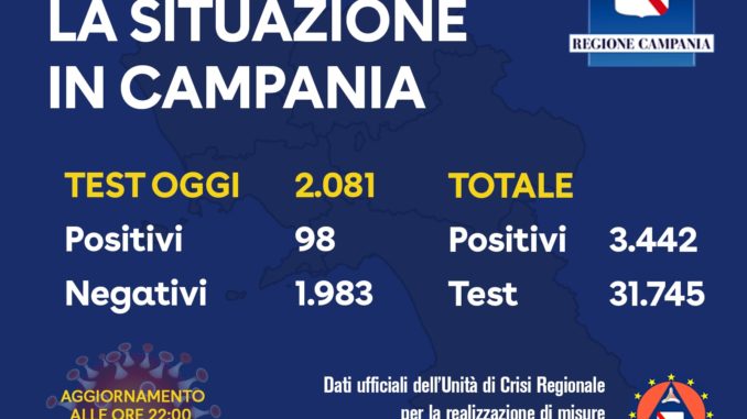 L’Unità di Crisi della Regione Campania comunica che sono pervenuti i seguenti dati: