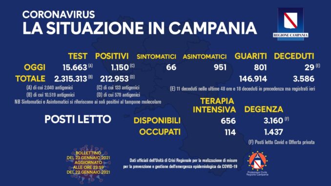 Positivi del giorno: 1.150 (di cui 133 casi identificati da test antigenici rapidi)