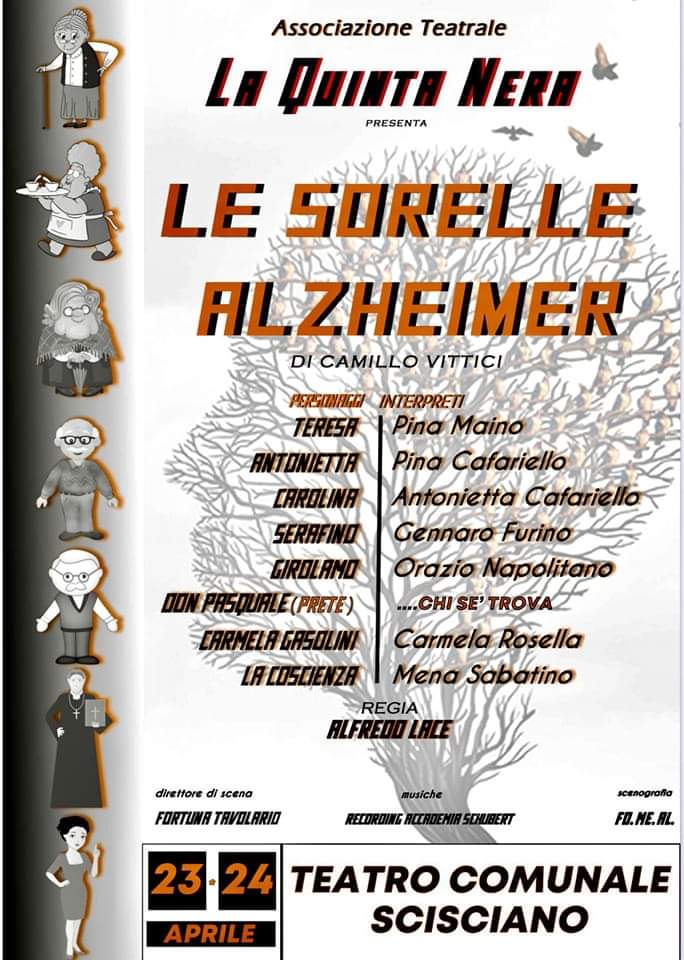 Una commedia in due atti scritta da Camillo Vittici e diretta dal regista Alfredo Lace “LE SORELLE ALZHEIMER”.