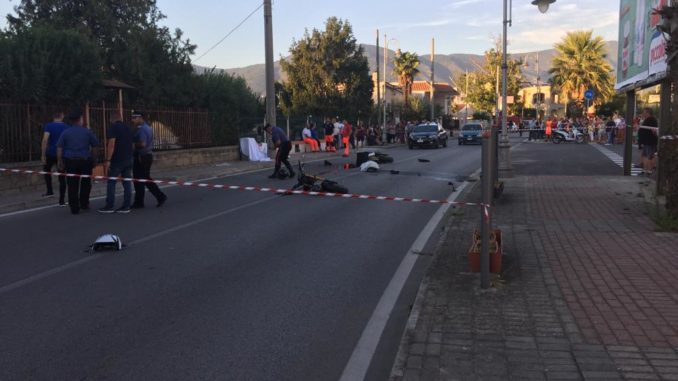 Camposano. Le immagini choc dell’incidente mortale di questo pomeriggio.Un incidente drammatico con conseguenze gravissime che hanno portato un giovane centauro a perdere la vita per essersi schiantato con la sulla moto contro un palo di cemento utilizzato dall’Enel e posto al margine della strada. La moto nell’urto si è disintegrata e il ragazzo non ha avuto scampo, è morto sul colpo, inutili i soccorsi. Sul posto i Carabinieri della Compagnia di Nola per cercare di risalire alle cause e se c’è il coinvolgimento di atri veicoli che al momento non vi sono sul posto. Un telo bianco posto sul corpo straziato del giovane con sangue sull’asfalto per diversi metri. La strada el sinistro è stata interdetta al traffico.