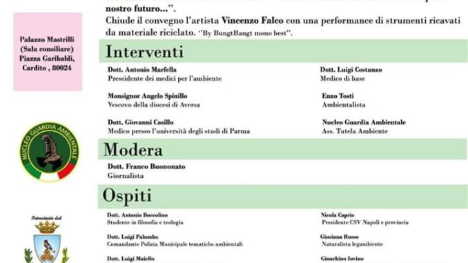 CARDITO (NA). Terra dei fuochi e ambiente con Marfella, Bassolinoed altri relatori.Il convegno si terrà alle ore 17  del 26 settembre 2018 presso la Sala Consiliare di Palazzo Mastrilli in via G. Garibaldi a CARDITO (NA). Interverranno, per un saluto, il sindaco di Cardito, Giuseppe Casillo, Monsignor Angelo SPINILLO, vescovo di Aversa, Antonio Bassolino, già sindaco di Napoli, ex governatore della Campania e Commissario di governo durante l’emergenza rifiuti in Campania. Tra gli altri relatori il noto oncologo dell’Istituto ‘Pascale’ di Napoli, prof. Antonio MARFELLA e il presidente D ell’ATAPC, associazione di volontariato di Protezione Civile e Tutela dell’Ambiente, Gioacchino IOVINO che coordina un gruppo di validi giovani e donna che si occupano, attraverso il volontariato di antincendio, sicurezza in luoghi pubblici e negli interventi di pronto soccorso avendo in dotazione 2 debrifrillatori concessi dalla Regione Campania in VISCIANO, presso la sede amministrativa in via Martiri d’Otranto e presso il Santuario della Madonna CONSOLATRICE del CARPINELLO.