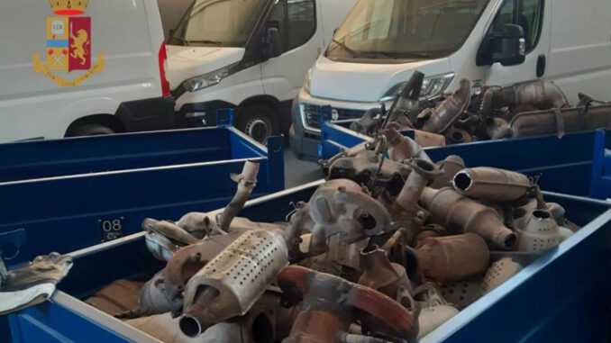 Nel corso dell’attività i poliziotti hanno controllato in via Traversa Pietro Donadio una ditta per il recupero e preparazione per il riciclaggio di cascami e rottami metallici dove hanno accertato che il titolare era sprovvisto della prescritta documentazione attestante la provenienza di oltre 1100 kg di marmitte.