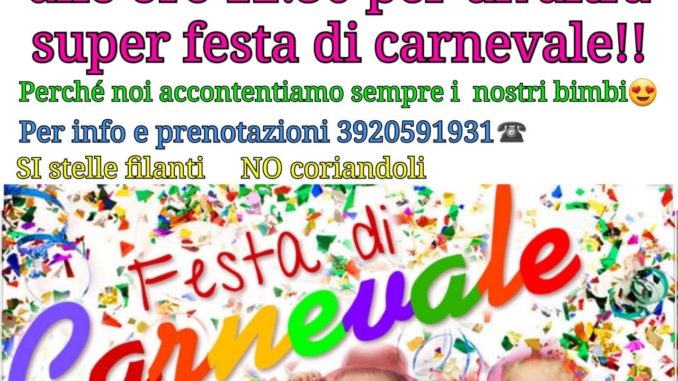 insieme il carnevale e vivere magici momenti di puro divertimento. Per info e prenotazioni chiama il 3920591931.