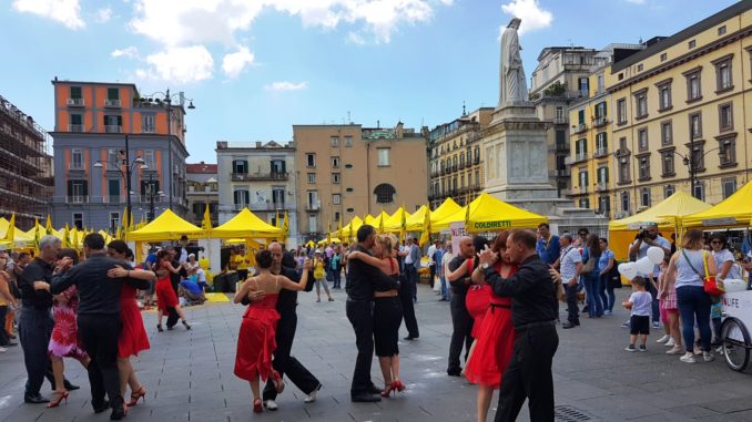 Gli agricoltori conquistano il cuore dei napoletani e dei turisti con circa 100 mila visitatori, 30 mila chili di ciliegie, 1.000 chili di formaggi, 500 chili di mozzarella, 6.000 chili di ortofrutta, 700 chili di salumi e 5 mila panini contadini. Sono i numeri che Coldiretti Campania stima per il Cerasa Fest, che per la seconda edizione ha colorato di giallo piazza Dante a Napoli. Per tre giorni migliaia di persone hanno potuto visitare il farmers village con il mercato di Campagna Amica, lo street food a km zero, l’orto didattico per i bambini, lo speciale spettacolo dei burattini “Pulcinella custode dei sapori”, a cura del maestro Giò Ferraiolo. Protagonista assoluta è stata la ciliegia campana, in tutte le sue varietà, in particolar modo le apprezzatissime “Malizia”, “del Monte” e “della Recca”. Nell’area dello street food contadino i visitatori hanno potuto degustare anche pasta Armando, prodotto da filiera agricola con grano 100% italiano, gelato di frutta con latte 100% italiano, prodotti da forno con farina 100% italiana, succhi di frutta e macedonia di stagione.