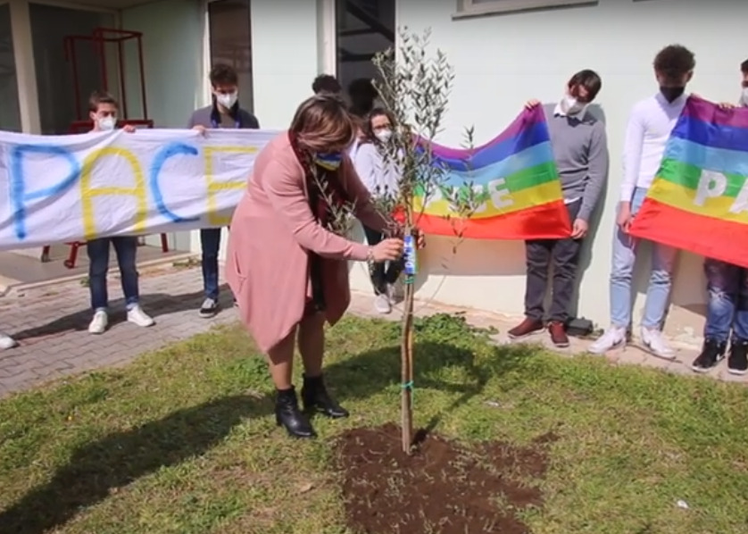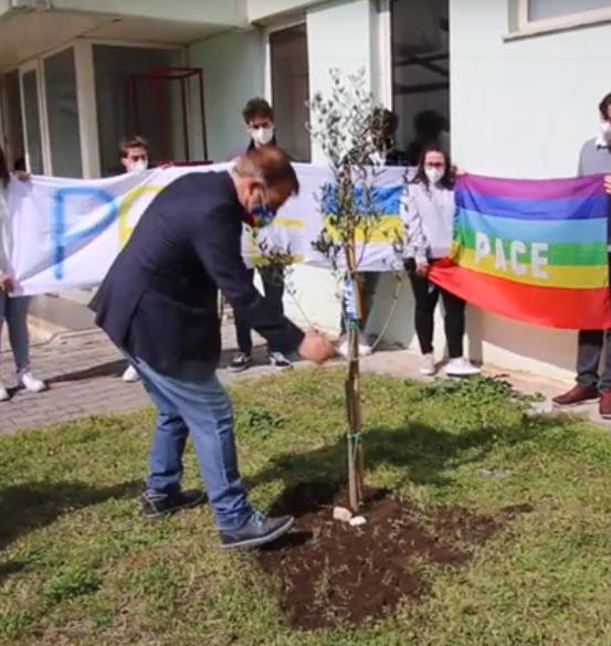 Non esistono guerre giuste o ingiuste, non esistono guerre “umanitarie”, se si vuole la pace bisogna preparare la pace… Questo è stato l’obiettivo che ha ispirato la piantumazione dell’albero della pace, della memoria e dei giusti in un’aiuola all’interno del liceo E. Medi di Cicciano in presenza di una delegazione di studenti, di docenti, della Dirigente Scolastica e dei collaboratori.