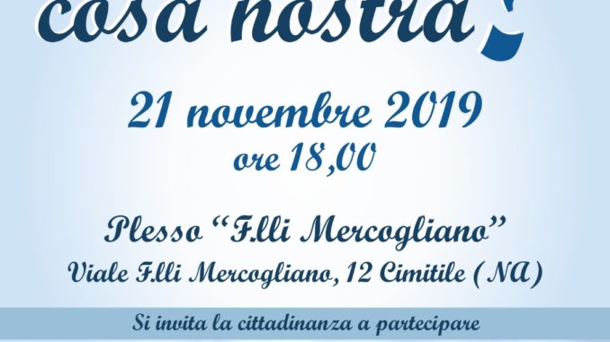 L’istituto Comprensivo “Mercogliano-Guadagni” di Cimitile organizza per oggi 21 novembre 2019 alle ore 18:00 presso la scuola ” F.lli Mercogliano” il Convegno dal titolo ” AMBIENTE, COSA NOSTRA?” per diffondere la Cultura della Legalità, difesa dell’Ambiente e della Salute.