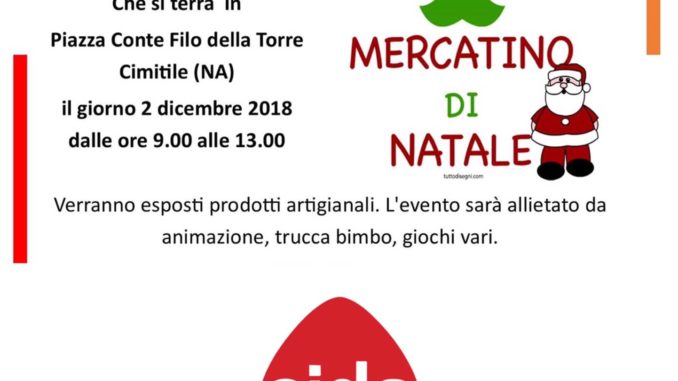 Domenica 2 dicembre 2018 in Piazza Conte Filo della Torre, Cimitile ( NA) dalle ore 09,00 alle ore 13,30 si svolgerà il mercatino di Natale, organizzato dall’Associazione Genitori del Sud.