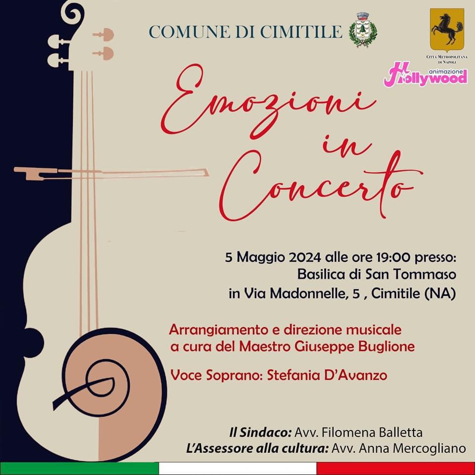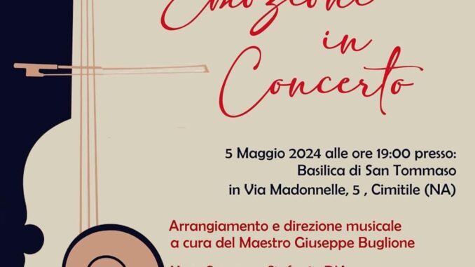 Oggi alle ore 19:00 nel Complesso Basilicale, Concerto di musica classica e classica napoletana con orchestra di archi e fiati. Direzione orchestrale: M. Giuseppe Buglione. Ingresso gratuito. MUSICISTI CONCERTO: Giuseppe Ariano – FLAUTO Octavian Cristea Nechita – OBOE Armando Puggioni – CLARINETTO Annamaria Puggioni – I VIOLINO Sebastiana Bonarrivo – I| VIOLINO Laura Cristea Nechita – VIOLA Filippo Siano – VIOLONCELLO Gennaro Cerbone – CONTRABBASSO Stella Gifuni – ARPA Felice Buglione – TASTIERA Giuseppe Buglione – TASTIERA Stefania D’Avanzo – VOCE SOPRANO.