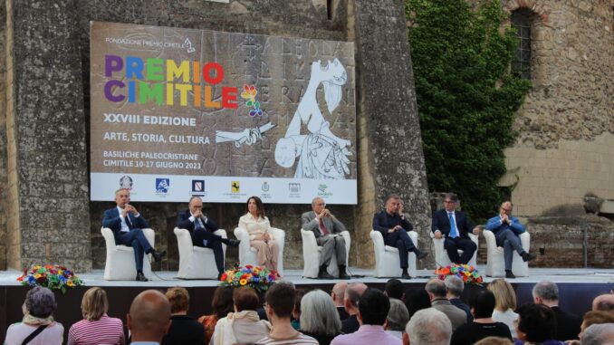 Ieri al Cimitile all’interno del complesso Basilicale Paleocristiano alle 18,30 si aperto ufficialmente la XXVIII edizione del Premi Cimitile. Per l’occasione è stata inaugurata anche la mostra “Guernica emblema di guerra e di Pace a cinquant’anni dalla morte di Pablo Picasso” a cura di Giuseppe Bacci, il tutto introdotto da un’esibizione della Fanfara del 10mo Reggimento Carabinieri Campania. A seguire, alle 19,00, si è svolto l’incontro sul tema della mostra e presentazione del libro “L’assedio. Il romanzo di Mariupol” di Andrea Nicastro, giornalista e scrittore, per le edizioni Solferino. L’autore, inviato speciale del Corriere della sera, ha raccontato alcune delle più tragiche guerre degli ultimi anni, la tratta dei migranti e il traffico d’organi internazionale. Presenti il sindaco di Cimitile Filomena Balletta, fresca di nomina, Felice Napolitano, Presidente della Fondazione Premio Cimitile; Elia Alaia, Presidente dell’Associazione Obiettivo III Millennio; Giuseppe Bencivenga, consigliere della Città Metropolitana di Napoli e sindaco di Frattaminore; Felice Di Maiolo, componente della Commissione Cultura della Regione Campania. A coordinare i lavori il giornalista Ermanno Corsi, presidente del Comitato scientifico del Premio Cimitile.
