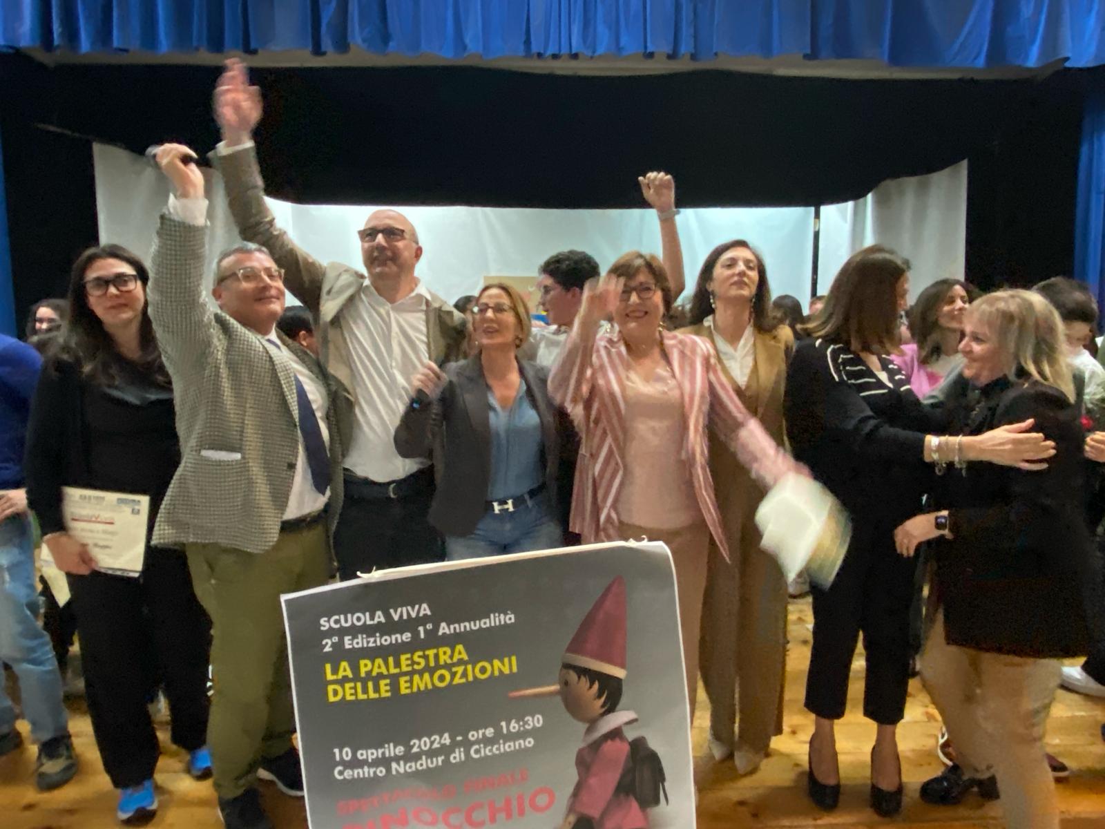 Cimitile, si è tenuto Mercoledì 10 aprile nella cornice del Centro Nadur, l’evento conclusivo di Scuola Viva, progetto voluto fortemente dall’Assessore all’Istruzione e alle Politiche Sociali della Regione Campania, Lucia Fortini, giunto alla seconda edizione, prima annualità. Protagonisti, ancora una volta, gli alunni e le alunne della Scuola Secondaria di primo grado, plessi C. Guadagni – Gallo, dell’I. C. MERCOGLIANO GUADAGNI di Cimitile che hanno messo in scena “Pinocchio”, in una versione aggiornata che ha inteso lanciare un messaggio di Legalità e di speranza, perché in fondo siamo tutti un po’ Pinocchio, ma alla fine i sogni, quelli veri e sinceri, quelli che nascono in animi puri, si realizzano. Lo spettacolo, un piccolo musical, ha coinvolto i moduli di Teatro, Musica Rap e Danza.