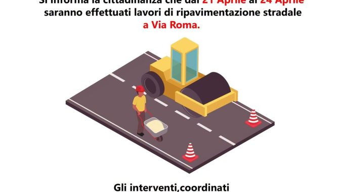 Il Comune di Cimitile informa la cittadinanza che, a partire da lunedì 21 aprile e fino a giovedì 24 aprile, saranno eseguiti lavori di ripavimentazione stradale in Via Roma.