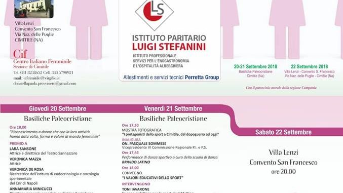 Anche quest’anno il Centro Italiano Femminile di Cimitile, propone la rassegna Percorsi al femminile. Una tre giorni, dedicata alle donne e non solo, in cui si parla di cultura, arte, scienza, sport, gastronomia, mettendo in risalto le eccellenze del territorio.
