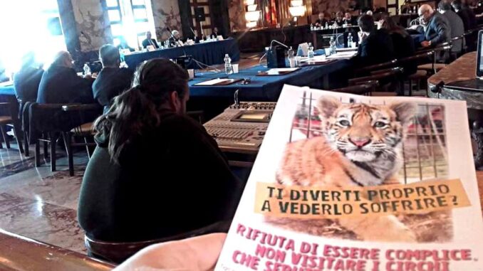 Ci chiediamo, ancora una volta, a che titolo il circo metterà le tende a Salerno, essendo in vigore un regolamento comunale, che, a partire dal 1° aprile 2017, avrebbe dovuto vietare “di utilizzare e/o di esporre in attività di spettacolo e/o di intrattenimento, pubblico o privato, animali appartenenti alle specie selvatiche ed esotiche, quali individuati nelle linee guida dell’Autorità scientifica CITES e, segnatamente: elefanti, felini, orsi, lupi, primati, rinoceronti, ippopotami, giraffe, foche, otarie e leoni marini, cetacei, rapaci notturni e diurni”, non essendoci mai stato alcun ricorso al Tar e non essendo stata emanata, da quanto ci risulta, alcuna sospensiva al regolamento.