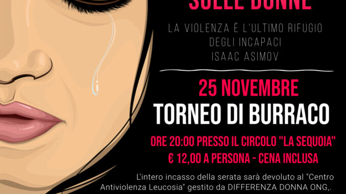 l circolo “La Sequoia” in prima linea per la giornata mondiale contro la violenza sulle donne. Il circolo di Pellezzano per domani, giovedì 25 novembre alle 20, ha organizzato un torneo di burraco con cena inclusa negli spazi della struttura di via Sabato De Vita. L’evento, che si terrà nel rispetto delle norme anti-Covid e patrocinato dal Comune di Pellezzano, prevede che l’incasso sarà devoluto al centro antiviolenza “Leucosia” gestito dall’associazione “Differenza Donna Ong”. Il centro “Leucosia” offre ascolto a sostegno delle territorio di Salerno e accoglienza specializzata a bambini, bambine, adolescenti vittime e orfani di femminicidio. La prenotazione, obbligatorio, si può effettuare al seguente numero: 3404901268.