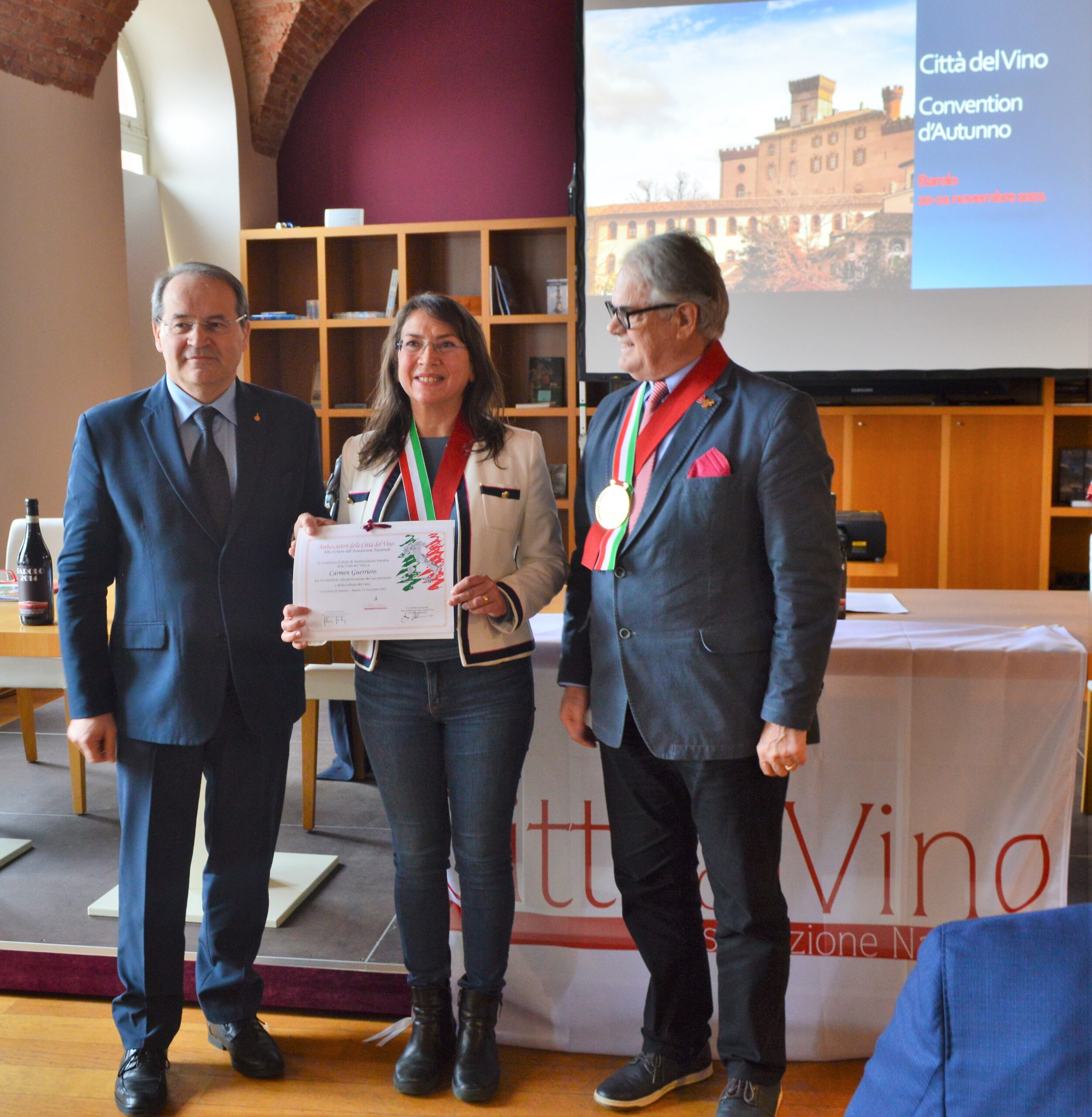 L’Associazione Nazionale Città del Vino, riunita a Barolo (Cuneo) “Città Italiana del Vino 2021”, per l’attesa Convention d’Autunno – dal 19 al 21 novembre – ha nominato l’Avv. Prof. Carmen Guerriero Ambasciatore Emerito di Città del Vino.