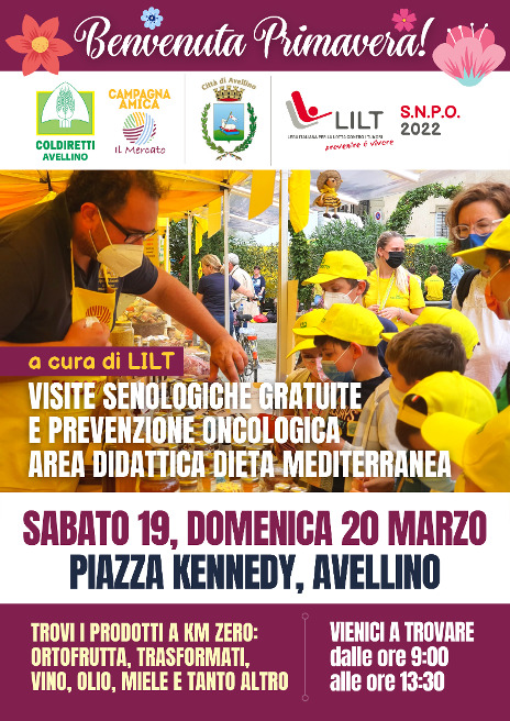 La prevenzione oncologica e le produzioni agroalimentari irpine insieme per promuovere un corretto stile di vita all’insegna della dieta mediterranea. Coldiretti Avellino e l’associazione LILT, con il patrocinio della città di Avellino, organizzano in piazza Kennedy sabato 19 e domenica 20 marzo dalle 9 alle 13 un appuntamento che mette insieme le visite senologiche gratuite con il mercato di Campagna Amica.
