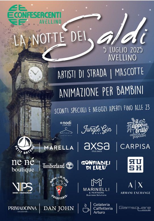 Inizia il conto alla rovescia per la “Notte dei saldi”, l’evento che inaugura la stagione delle vendite promozionali estive in Irpinia, organizzato dalla Confesercenti provinciale di Avellino, guidata da Giuseppe Marinelli, e da numerose attività del capoluogo, che ha registrato un’ampia adesione tra gli esercizi commerciali.