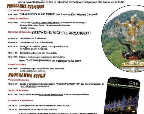 Tutto pronto per la festa in onore di San Michele Arcangelo a Contrada (AV) che si terrà il 28 29 e 30 settembre. Ufficializzato anche il programma che pubblichiamo di seguito: