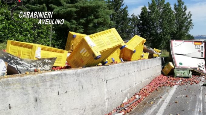 Nella tarda mattinata, a Conza della Campania, km 64,500 della SS 91, si è ribaltato il rimorchio di un autoarticolato: riversato in strada gran parte del carico di frutta.