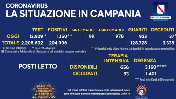 Tamponi del giorno: 13.929 (di cui 1.353 antigenici)