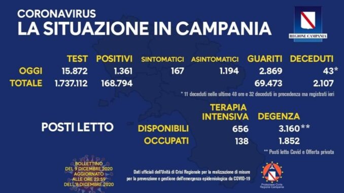 * 11 deceduti nelle ultime 48 ore e 32 deceduti in precedenza ma registrati ieri