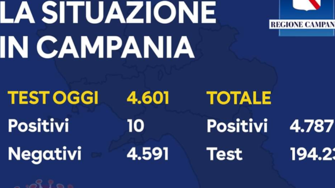 – Ospedale Ruggi di Salerno: sono stati esaminati 578 tamponi di cui 1 risultato positivo;