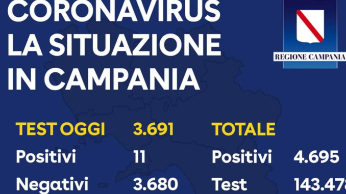 Coronavirus. 11 positivi in Campania, 3.691 i tamponi.