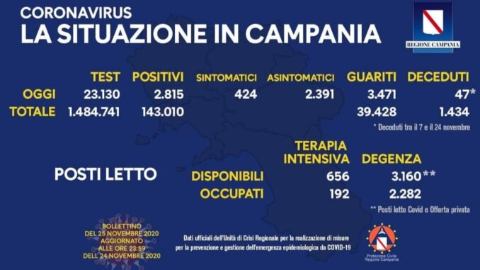 Coronavirus. Boom di guariti in Campania, 2.815 i positivi.