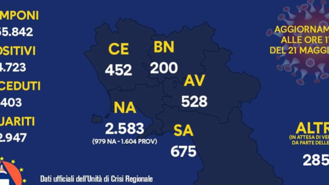 Il punto alle ore 23.59 di ieri sui positivi in Campania ripartiti per province: