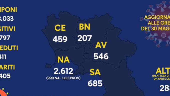 Il punto alle ore 23.59 di ieri dei casi riscontrati in Campania ripartiti per province: