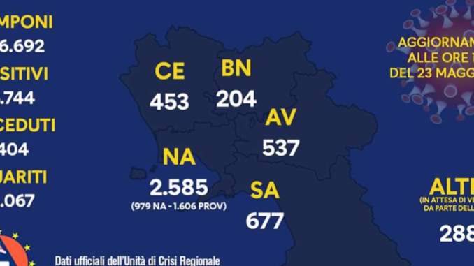Il punto alle ore 23.59 di ieri con il totale dei casi in Campania ripartiti per province: